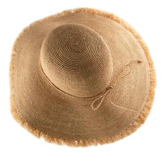 This hat embodies the spirit of beautiful summer days. It evokes gentle light, spontaneous getaways, and those effortlessly elegant feminine silhouettes. Its flexible line, frayed brim, and bohemian chic spirit lend it a light, natural, and utterly charming presence.