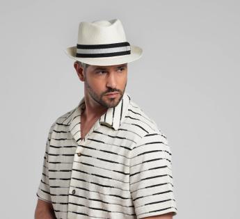 If you're looking for a hat that's both elegant and easy to wear, this Panama trilby is perfect for you! Its grosgrain ribbon plays with contrasts: a subtle blend of black and gray, enhanced by a fine white topstitching that adds texture without overdoing it. A small detail that makes all the difference for a chic and modern look.
