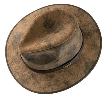 Typical and sophisticated Traveller 100% made of pig leather which has been then aged. The crown and the edge have been through a hardening process in order to strengthen the headdress. Soft with a velvet effect, its simple design is not to the detriment of its efficiency and of its characteristic relaxation. The creation is enhanced by a leather braid and features lateral eyelets for more breathability.