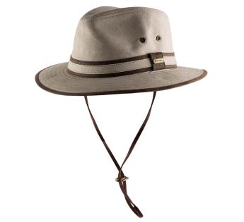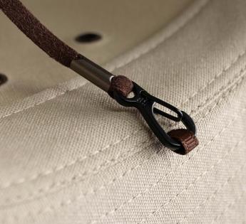Beneath its rugged exterior, this cotton hat conceals remarkable efficiency. Its dense canvas provides optimal sun protection, mesh eyelets manage heat, and its removable chin strap secures your look against the wind.