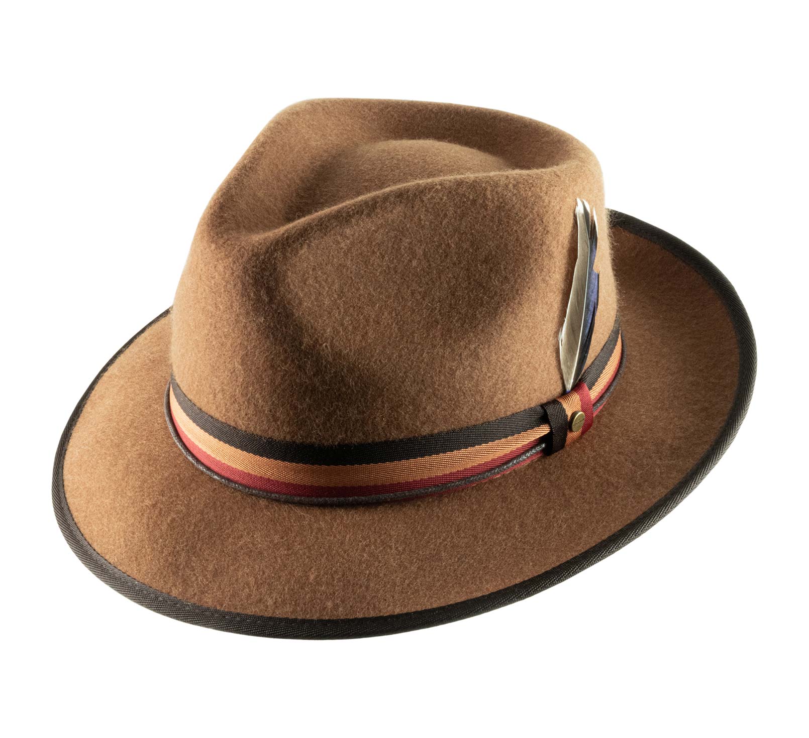 Fedora hat with an original angular design around the crown. It is molded in a matter of a high quality which is 100% composed of finely crafted wool from Australian sheep. The hat is naturally waterproof, which will allow us to keep on enjoying this elegant look even under the rain.