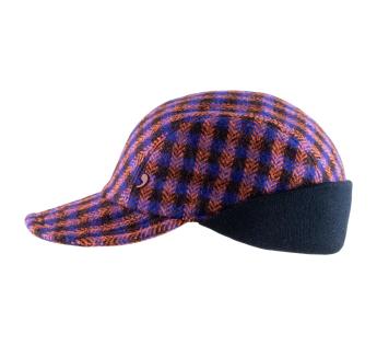 Warm baseball cap designed with a wide and supple visor to make the headgear foldable. It is entirely made in pure and dense wool customized by alternating colored lines with herringbone patterns inside them. The model is equipped with an earflap to therefore extended its protection.
