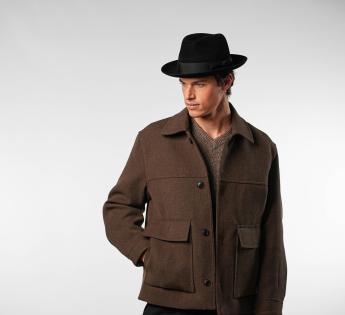 The timeless Fedora shape is enhanced by a moldable raw cut brim, which can be worn down or up, depending on the desired style. A hat that is both refined, technical, and versatile, designed for those who seek elegance without compromise.