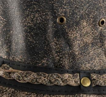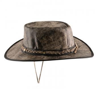 Soft leather, foldable hat that can be placed in a suitcase or bag.