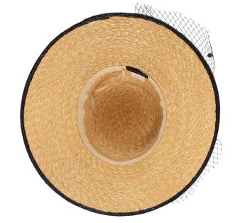 This hat exudes all the charm of feminine silhouettes. Its loose line, its finely woven straw, its tied ribbon and its delicate veil create a chic look, subtly vintage, full of grace and character.