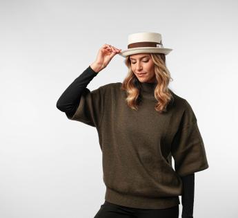 It can be worn in several ways: with a downturned brim for a sleek style, or with an upturned brim for a more daring look. Unisex and versatile, this hat suits both feminine and masculine wardrobes. Ideal for those seeking a statement headpiece, both elegant and decidedly modern.