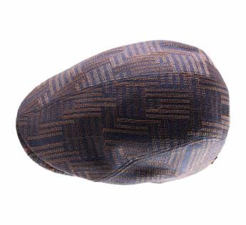 Flat cap, crafted with a beautiful combination of materials and patterns reminiscent of printed circuits. A headpiece with a unique techno/retro style.