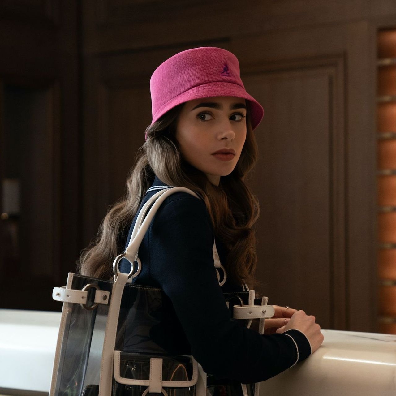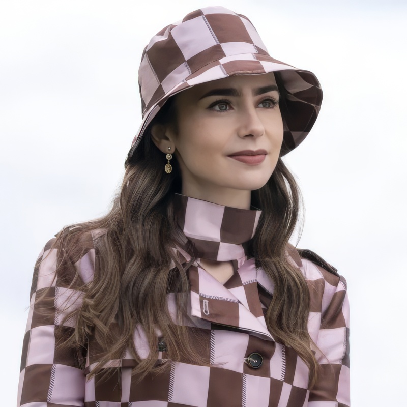 In Emily in Paris , headwear goes far beyond its role as an accessory to become a true visual language . French Beret, Bucket hat, or hat instantly define a silhouette, structure the look, and fully contribute to the character's narrative . Each shape, each color conveys an intention, a stance, a mood.