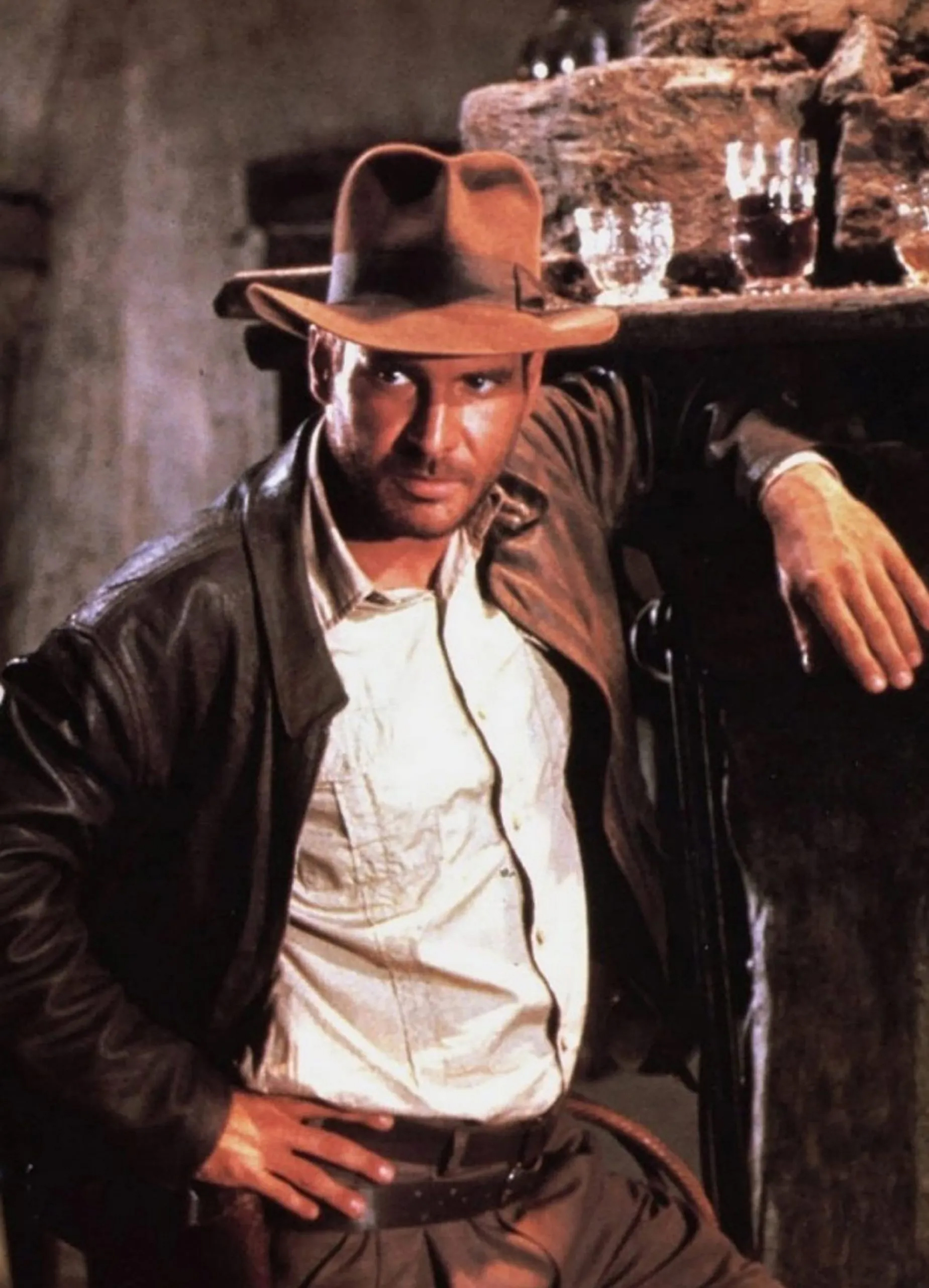 Fun fact: To give Indiana Jones's hat its lived-in look, costume designer Deborah Nadoolman Landis and Harrison Ford spent an evening distressing several models designed for the film. Sanded with sandpaper and metal brushes, rubbed, rolled in dirt and dust, these hats were even deliberately crushed. Harrison Ford went so far as to sit on them to give them the flexibility and patina that are now integral to their legend.