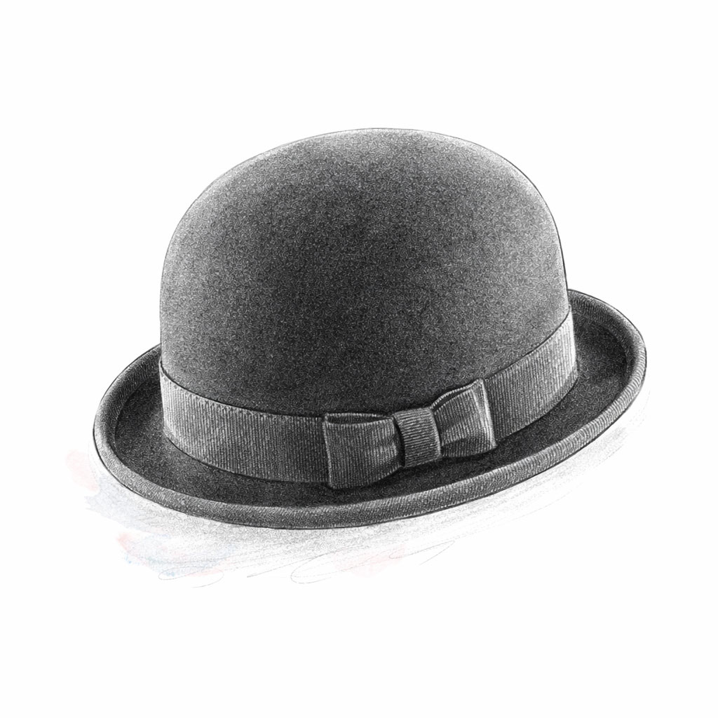 Bowler Hat: At the same time, other iconic shapes traverse the decades. It is important to not confuse it with the Bowler Hat. More structured, more assertive, with a short brim turned up all around, the Bowler Hat embodies a different elegance, almost architectural. Where the Cloche Hat favors fluidity, fall, and proximity to the face, the Bowler asserts a clear and symmetrical presence. One envelops, the other rests. (see article how to wear a Bowler Hat)