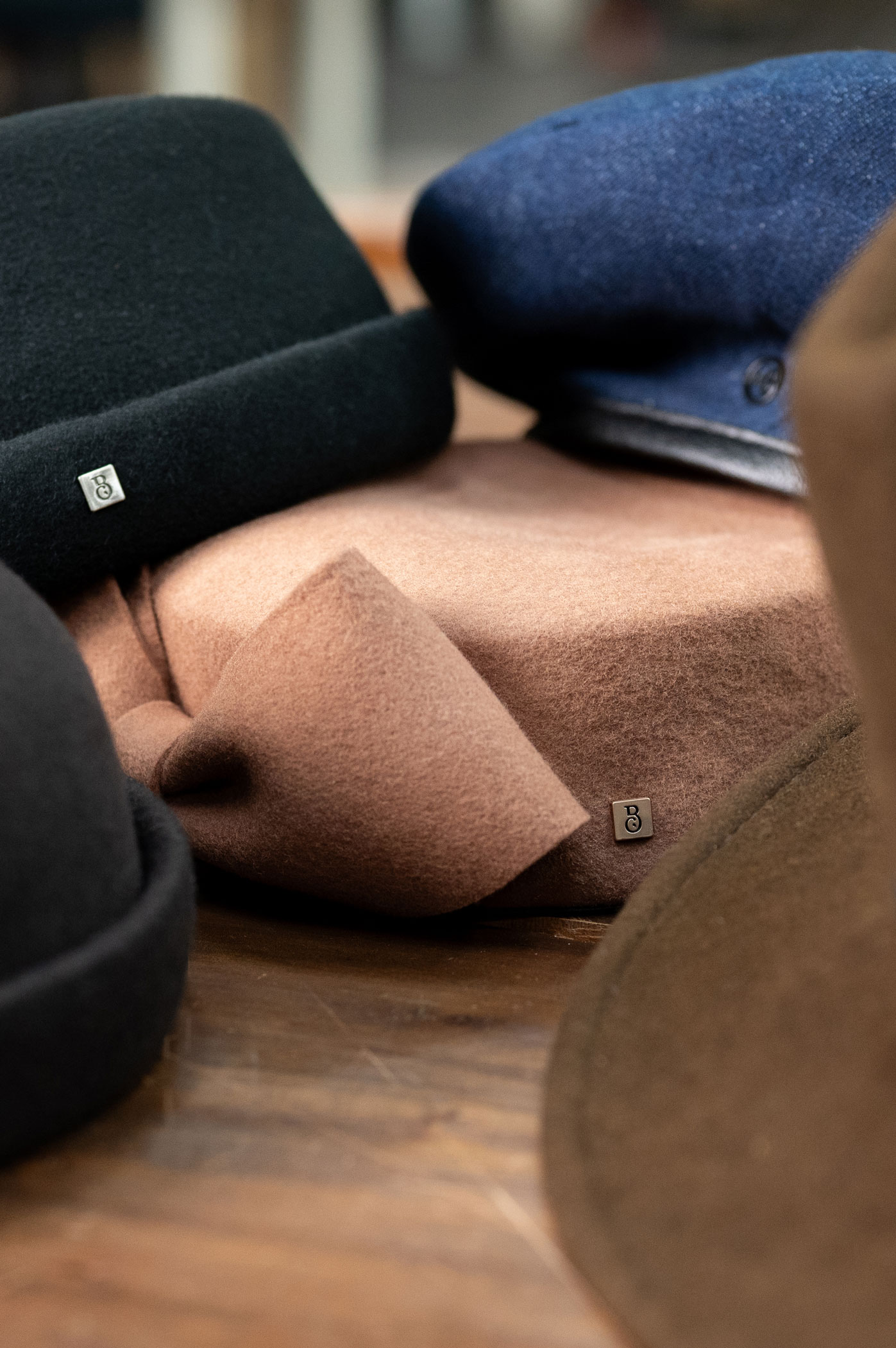 A dense wool felt hat keeps its shape season after season. A 100% linen cap holds its line with natural ease. A merino wool beret , carefully selected, breathes, remains supple, and feels soft against the skin.