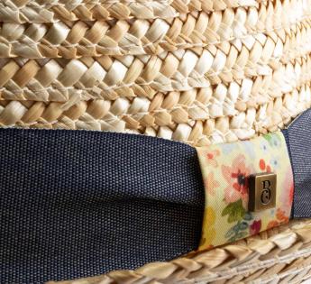Kid's hat through a porkpie shape. Its braid is of denim for a seducing jeans effect. The latter is accompanied by a flowered band. The badge of our brand BCBG Couture on the band is adding a timely touch of elegance.