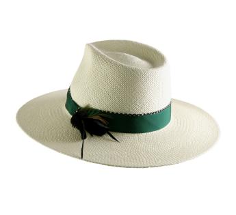 Standing out by a supple and natural material, and created from very meticulous braiding, the Panama features here an effervescence of feathers (rooster, goose...) arranged with panache. A model which seduces any heads thanks also to its appropriate protection under the sun and through its large edges.