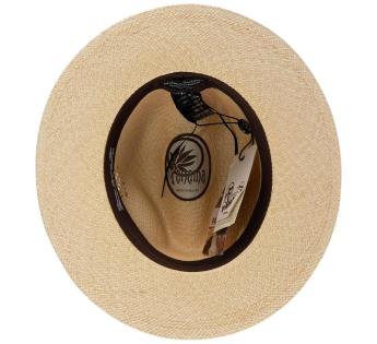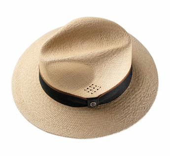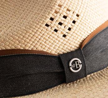 This hat captivates with its clean, refined lines, then unveils its uniqueness through an openwork pattern, like delicate lace drawn into the fibers of the Panama Hat. A precious detail, almost like a jewel, catching the light and defining the silhouette.