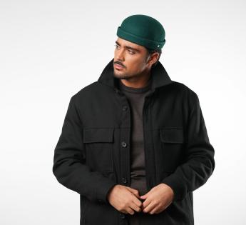 Bold, sleek, and decidedly contemporary. This Docker Beanie in felt reinterprets the codes with character. Derived from a Bowler Hat base, it has been entirely reworked and hand-molded in our Lyon workshop. The result is a piece with a minimalist design, enhanced only by a silver metallic Label, a discreet yet assertive signature of our craftsmanship.