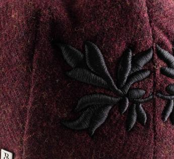 At the back, a raised embroidery crafted in our workshop provides a strong signature. The 3D pattern captures the light and reveals the full character of this piece, designed as a standalone accessory. This flat cap embodies an art of detail, blending graphic style with timeless spirit.