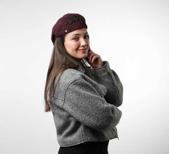 At the back, a raised embroidery crafted in our workshop provides a strong signature. The 3D pattern captures the light and reveals the full character of this piece, designed as a standalone accessory. This flat cap embodies an art of detail, blending graphic style with timeless spirit.