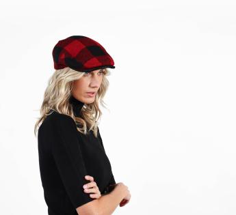 Cap featuring wide patterns of black and red squares for a trendy warm headgear. The black leather visor is contrasting and strengthening the vintage aspect of the model. The cap precisely features the 90-degree seam on the side. Its fabric is composed of a warm and resistant wool.