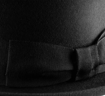 Crafted from naturally water resistant felted wool, this model features classic lines, enhanced by a sophisticated black ribbon. Its traditional shape, both bold and refined, pays homage to the European millinery art.