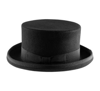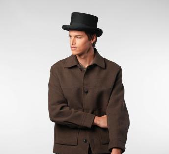 An icon of timeless elegance, this Top Hat in hardened felt embodies absolute refinement. With its straight crown, satin-finished interior, and classic grosgrain braid, it commands a noble and assertive silhouette. Perfect for grand occasions, it adds a theatrical and distinguished touch to any formal attire.