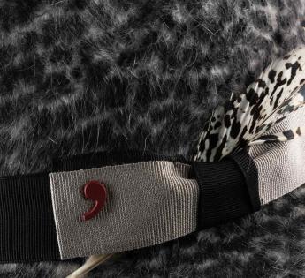 Hairs are pulled with a metallic brush to obtain a beautiful imitation of fur. The latter is customized thanks to a leopard print, which adds a refined touch to the creation. Concerning its center dent crown, it is rounded with a decorative satin band achieved by a contrasted knot and feather.