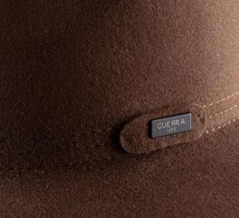 With its clean line and sculpted crown, this Outback Hat with a short brim asserts a sober elegance. The raw cut brim, highlighted by an elegant topstitching, gives it a contemporary and structured look. The whole is enhanced by a matching braid, accented with topstitching and punctuated by a discreet Guerra 1855 signature plaque, for a refined and controlled design.
