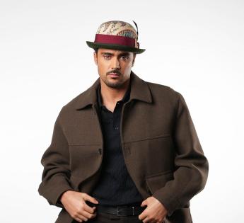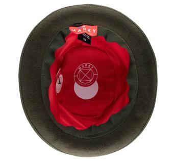 Made in France, this model merges artisanal craftsmanship with a bold aesthetic. The contrast between the printed crown and the dark rolled brim accentuates its theatrical character, while remaining elegantly wearable. Ideal for asserting one's style, enhancing an outfit, or making a statement at an event.