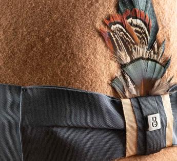 Its compact and refined shape is enhanced by a satin bow, accented with a subtle feather, evoking understated sophistication. The lightness of the felt offers unparalleled comfort, while the crafted band ensures a perfect fit, blending tradition and innovation.