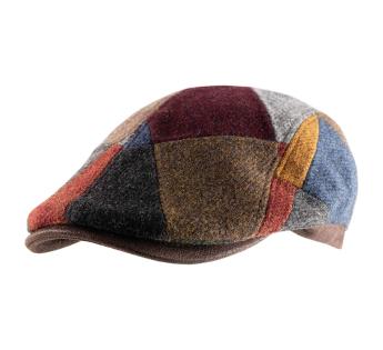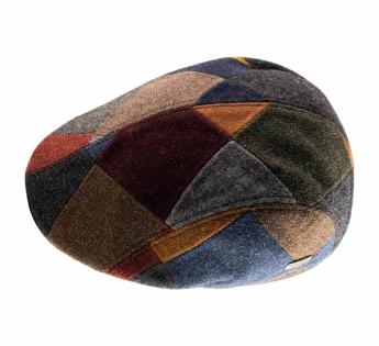 This flat cap made of pure Shetland wool stands out for its colorful patchwork and timeless elegance. Shetland wool is renowned for its durability and softness, providing excellent insulation while remaining lightweight. Naturally breathable and thermoregulating, it protects you from the cold without overheating, making it ideal for cooler seasons.