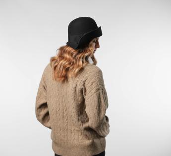 With its encompassing shape, this cloche perfectly hugs the head and softly frames the face. This wear gives a graceful and feminine look, ideal for enhancing the nape and elongating the silhouette. Crafted in wool felt, it combines comfort, warmth, and perfect hold.