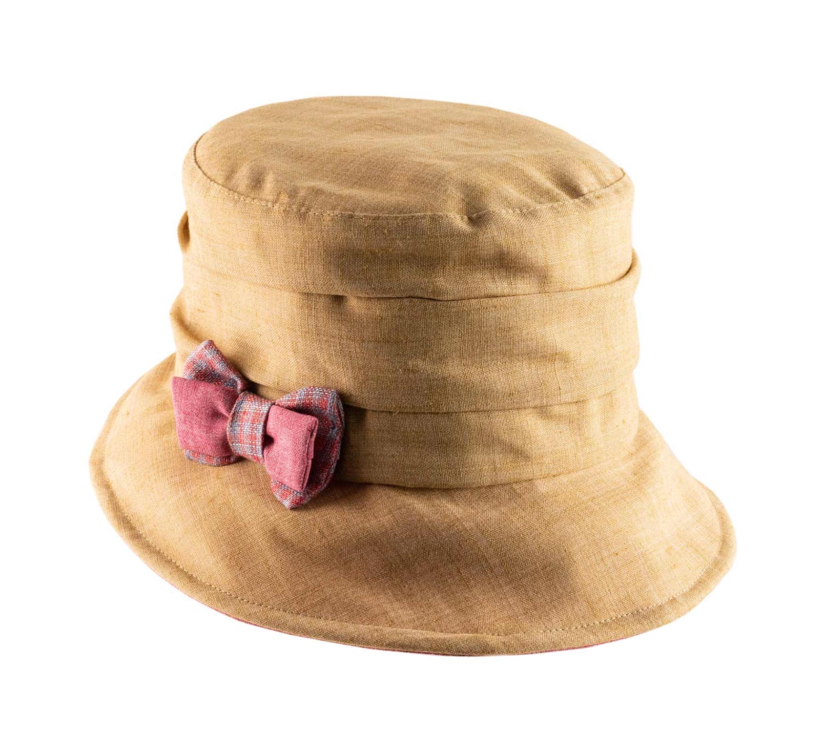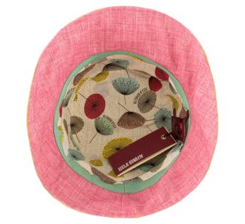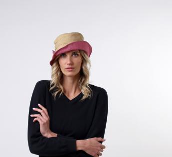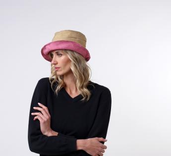 The pleats are adding volume to the band of the hat while the latter is adorned with an elegant knot that matches the underneath of the brim. As for its comfort, it has also been worked and reinforced by a cotton lining.