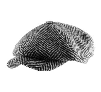 Generous-volume Irish cap, with a loose style on the side. Its volume can even be accentuated by unbuttoning the snap on the visor. Large herringbone patterns decorate its design.