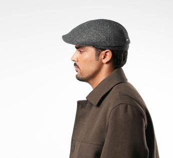 Streamlined silhouette, noble material, assertive character. This Stetson flat cap captivates with its sleek style and meticulous craftsmanship. Made from authentic harris tweed wool, woven in Scotland, it offers natural insulation and effective thermal regulation. Ideal for facing the cooler seasons while remaining lightweight and breathable. Its structured harris tweed weave creates a subtle honeycomb pattern, blending depth and elegance in subtly nuanced dark tones.