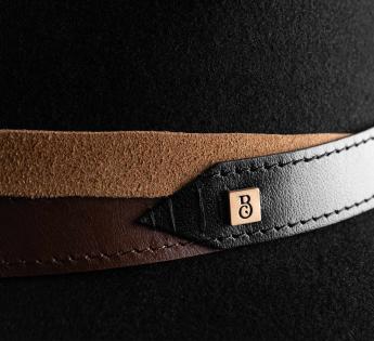 A fusion of style and character, this felt fedora stands out with its multi-textured leather trimming. Topstitching, tone-on-tone embroidery, and a golden signature enhance this raw yet elegant mix. Water resistant and crushable, it accompanies you effortlessly, whether in the city or traveling.