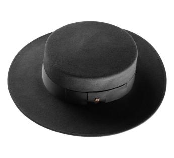 Crafted in Italy from high-quality wool felt, it is adorned with a braid made in France, the result of a partnership between artisans from both countries. This dialogue of craftsmanship gives birth to a piece that combines tradition and boldness, in a style that is both minimalist and expressive. A touch of Andalusian, a touch of couture, this hat transcends eras without ever losing its allure.