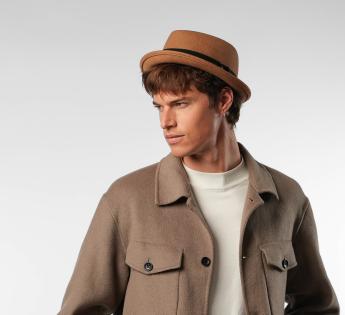 Assertive style and meticulous details: this reimagined porkpie plays on the subtle contrast between preppy spirit and timeless elegance. Its grosgrain braid, crafted like a shirt collar and adorned with two embroidered buttons, immediately catches the eye. A discreet Label and a fine embroidery on the brim, a nod to the thread of the buttons, reinforce this refined harmony.