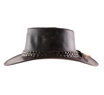 Rancher hat designed through a smooth leather and adorned with a leather braid of 4 thick strands. The matter is in fact calfskin which is made with the best selection of leather. That choice ensures therefore a comfortable and robust model for pleasant and prolonged experiences.