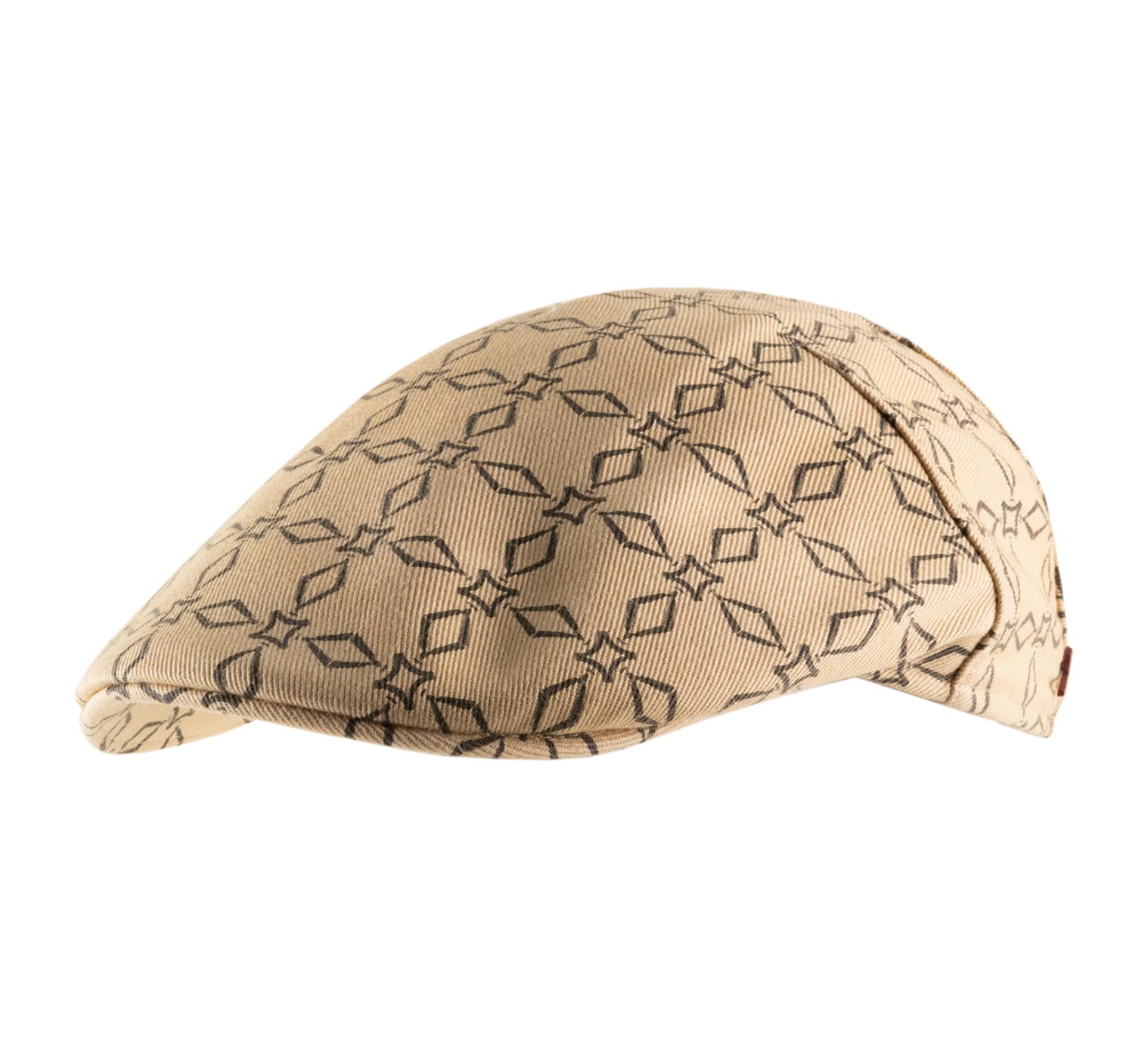 Beret cap made thanks to a fabric which is mostly made with cotton so that it adapts the beautiful season. It'll be breathable through the absence of a lining and will ventilate better the hair. The cloth is finally customized with a print that features geometrical shapes, elegant and measured, in order to perfect different kinds of styles.